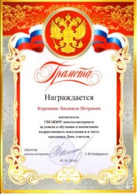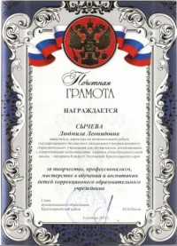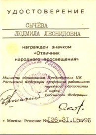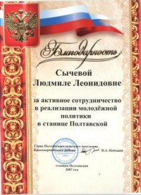 Ф.И.О.: Сычева Людмила Леонидовна. Должность: заместитель директора по воспитательной работе. Образование: Адыгейский государственный педагогический институт. Специальность по диплому: учитель русского языка и литературы. Педагогический стаж: 43 года. |