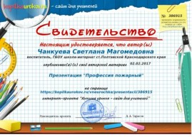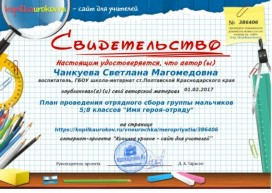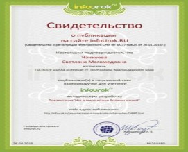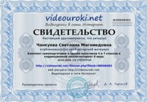 Ф.И.О.: Чанкуева Светлана Магомедовна. Должность: воспитатель. Образование: Буйнакское ПУ. Специальность по диплому: воспитатель ДОУ. Педагогический стаж: 41 год. Квалификационная категория: первая. Тема самообразования: «Формирование нравственных качеств у умственно отсталых подростков через внеклассные мероприятия». |