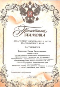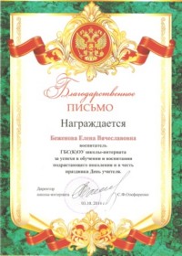 Ф.И.О.: Беженова Елена Вячеславовна. Должность: воспитатель. Образование: Адыгейский государственный университет. Специальность по диплому: преподаватель дошкольной педагогики и психологии, методист по дошкольному воспитанию. Педагогический стаж: 33 года. Квалификационная категория: высшая. Тема самообразования: «Формирование нравственных представлений воспитанников, имеющих ОВЗ». |