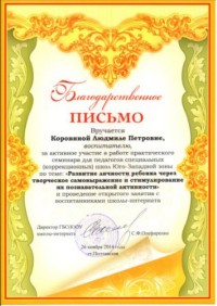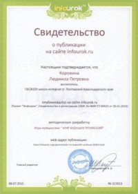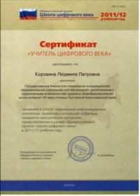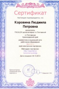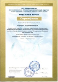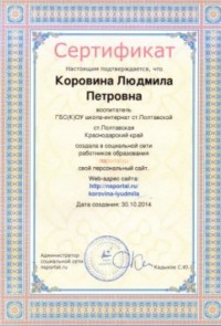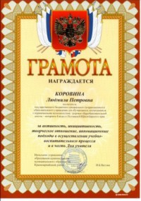 Ф.И.О.: Коровина Людмила Петровна. Должность: воспитатель. Образование: Ростовский государственный педагогический университет. Специальность по диплому: педагог-психолог. Педагогический стаж: 27 лет. Квалификационная категория: соответствие занимаемой должности. Тема самообразования: «Воспитание культуры общения у детей старшего возраста». |