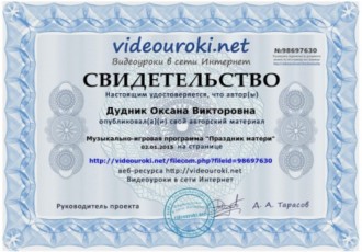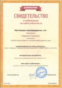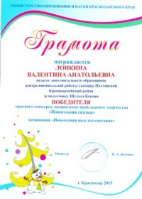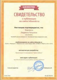 Ф.И.О.: Дудник Оксана Викторовна. Должность: воспитатель. Образование: училище г.Ейска. Специальность по диплому: воспитание в дошкольных учреждениях. Педагогический стаж: 28 лет. Квалификационная категория: соответствие занимаемой должности. Тема самообразования: «Формирование интереса к родному краю, природе, людям через внеклассные мероприятия». |