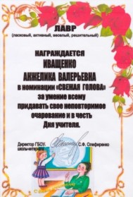 Ф.И.О.: Иващенко Анжелика Валерьевна. Должность: воспитатель. Образование: Государственное образовательное учреждение высшего профессионального образования Славянский-на-Кубани государственный педагогический институт. Специальность по диплому: учитель начальных классов. Педагогический стаж: 11 лет. Квалификационная категория: соответствие занимаемой должности. Тема самообразования: «Формирование культуры речи, культуры поведения». |