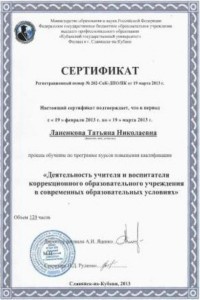 Ф.И.О.: Ланенкова Татьяна Николаевна. Должность: воспитатель. Образование: профтехучилище г.Череповца Вологодской области. Специальность по диплому: воспитатель ДОУ. Педагогический стаж: 33 года. Квалификационная категория: соответствие занимаемой должности. Тема самообразования: «Развитие творческих способностей через часы детского творчества». |